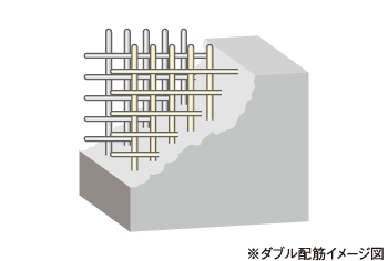 地震時に効力を発揮する耐震壁(ダブル配筋)を建物全体にバランス良く配置し、耐震性や耐久性を向上させ、地震に強く長持ちするマンションを実現しています。